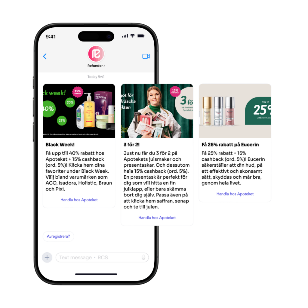 Black Friday er ikke bare en av de største kampanjeperiodene i året. Det er også en stresstest for mange kundedialoger. Når innboksen fylles til randen og SMS-volumene skyter i været, blir det brutalt tydelig hvilke meldinger som faktisk når frem – og hvilke som forsvinner i støyen. Midt i årets travleste handleuke bestemte Refunder seg for å ta et strategisk skritt fremover. I stedet for en tradisjonell kampanjeutsendelse via e-post eller SMS, testet de det nye formatet RCS (Rich Communication Services) i en av Sveriges største satsinger i kanalen. Målet var å bryte gjennom støyen, skape høyere engasjement enn tradisjonell SMS og samtidig styrke både merkevareposisjon og konvertering.