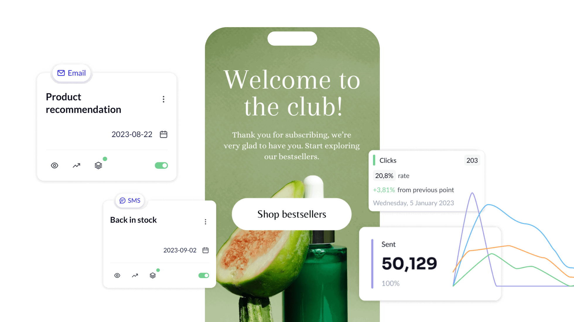Maksimer kraften til kundedata og tilpass kundeopplevelsen med merkevaren din. Med vårt verktøy for Marketing Automation , nyhetsbrev og SMS-sending kan du skreddersy kommunikasjon ved hvert berøringspunkt.